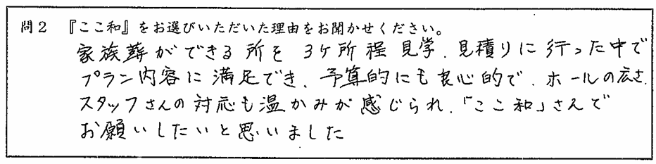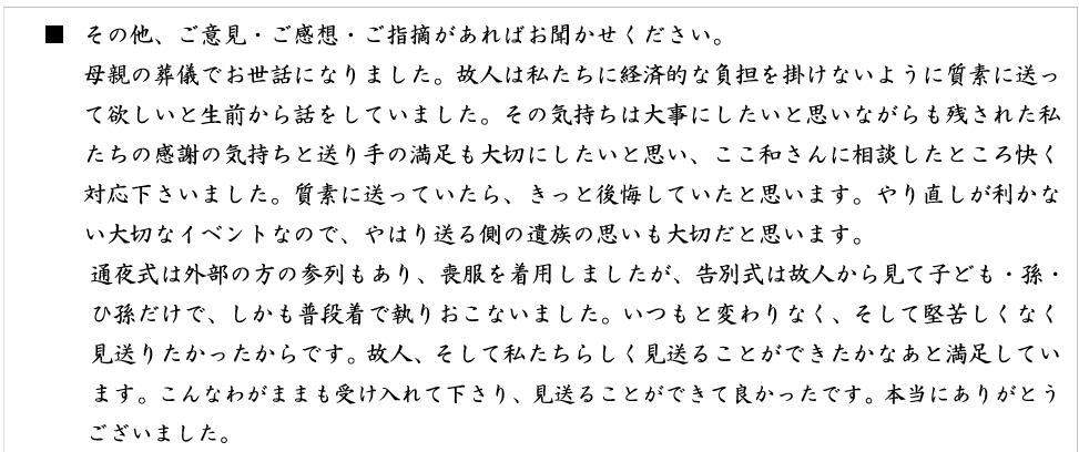 ご利用者様からの声 - まごころ葬ここ和