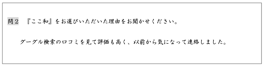 Q1.「ここ和」をお選び頂いた理由は?