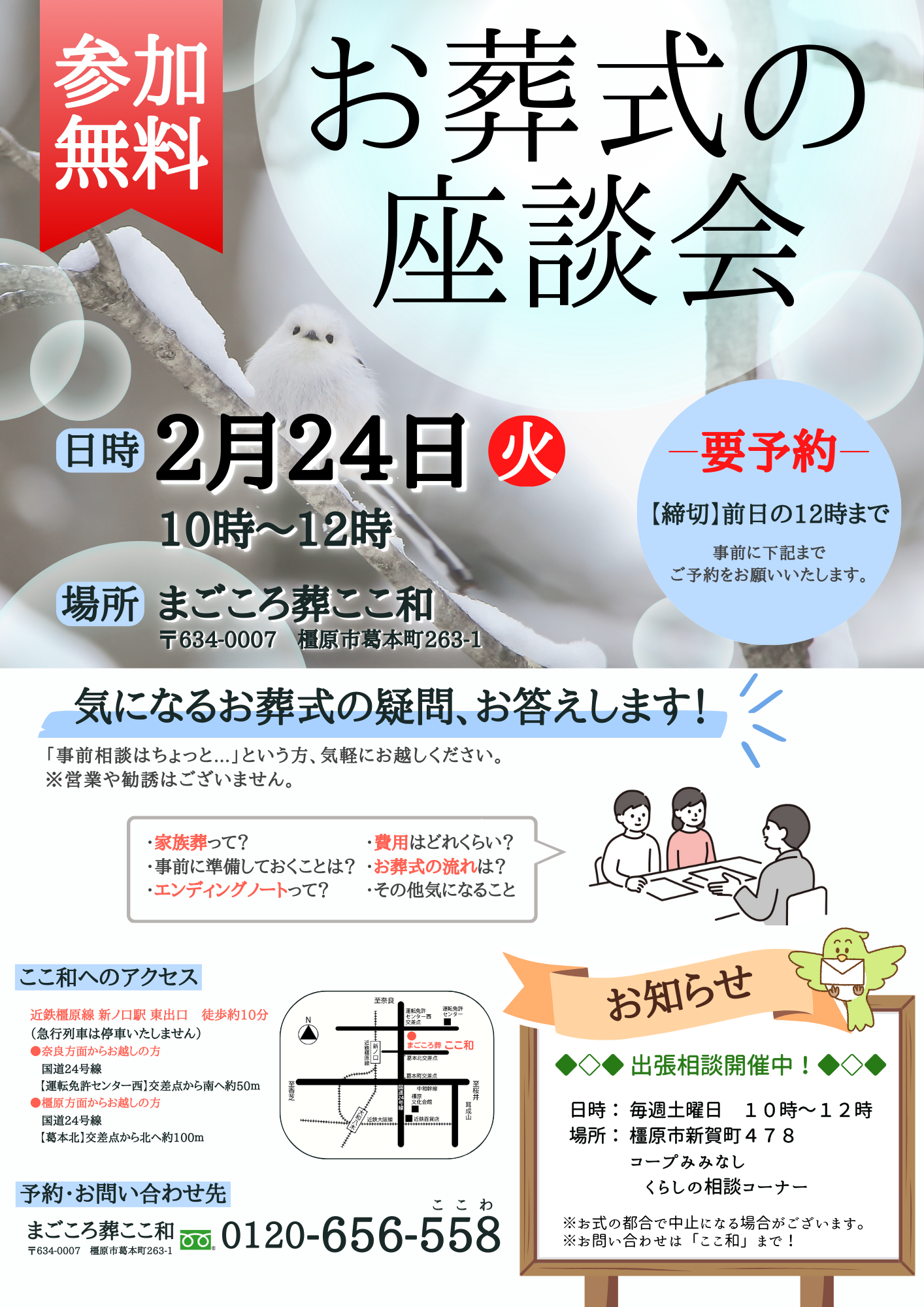2月開催‼「お葬式の座談会」のお知らせ - まごころ葬ここ和
